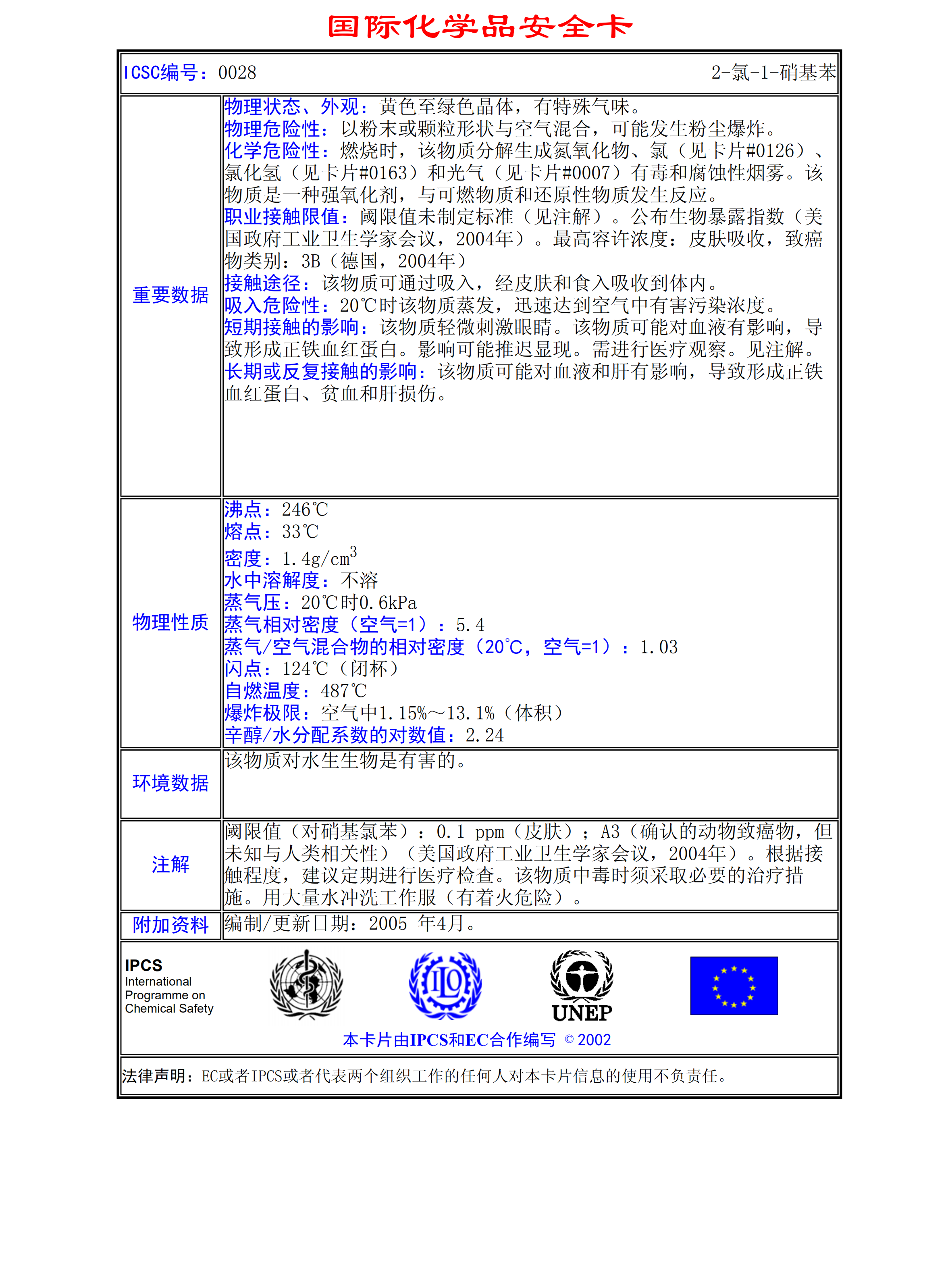 2-氯-1-硝基苯MSDS
