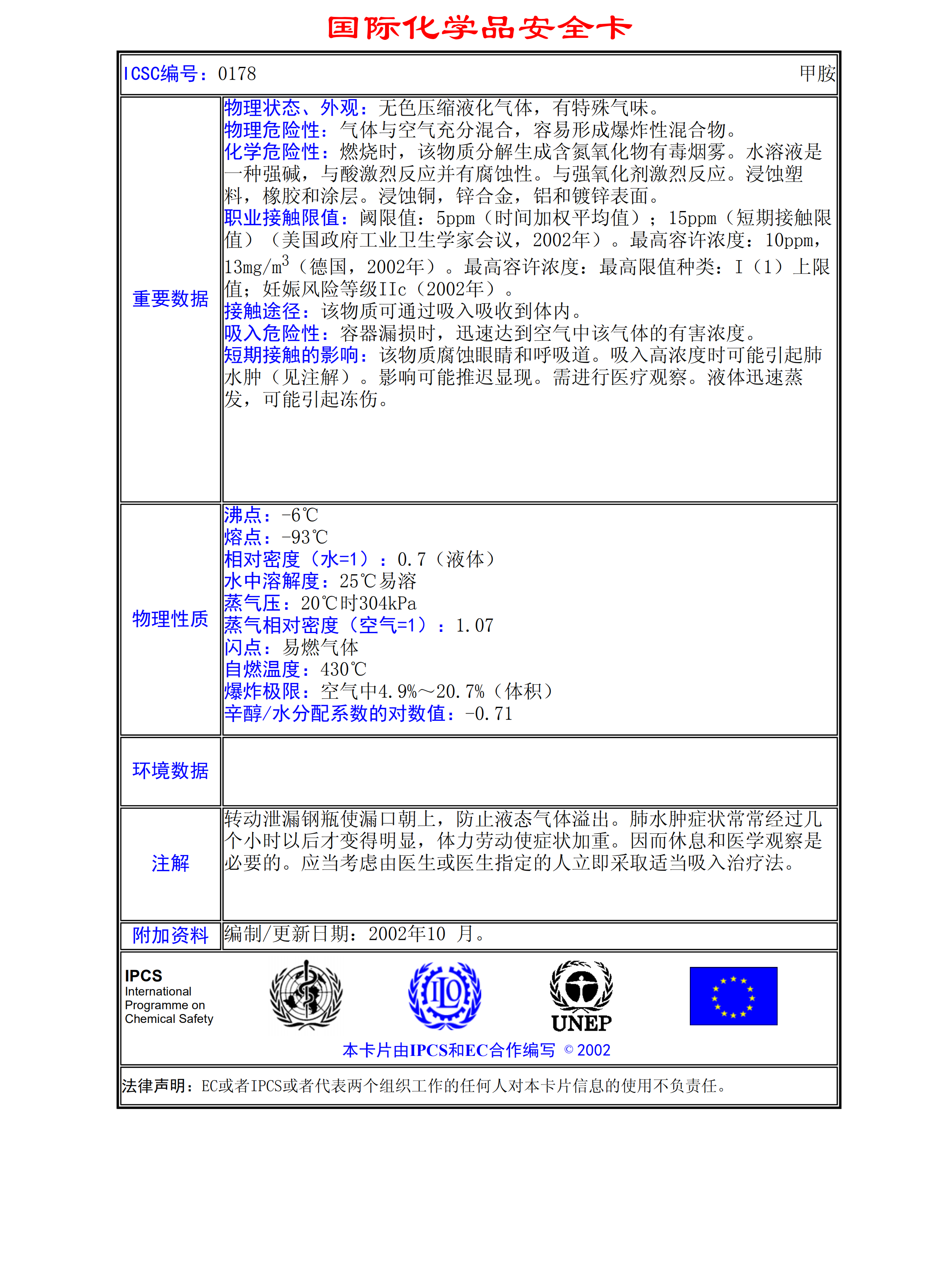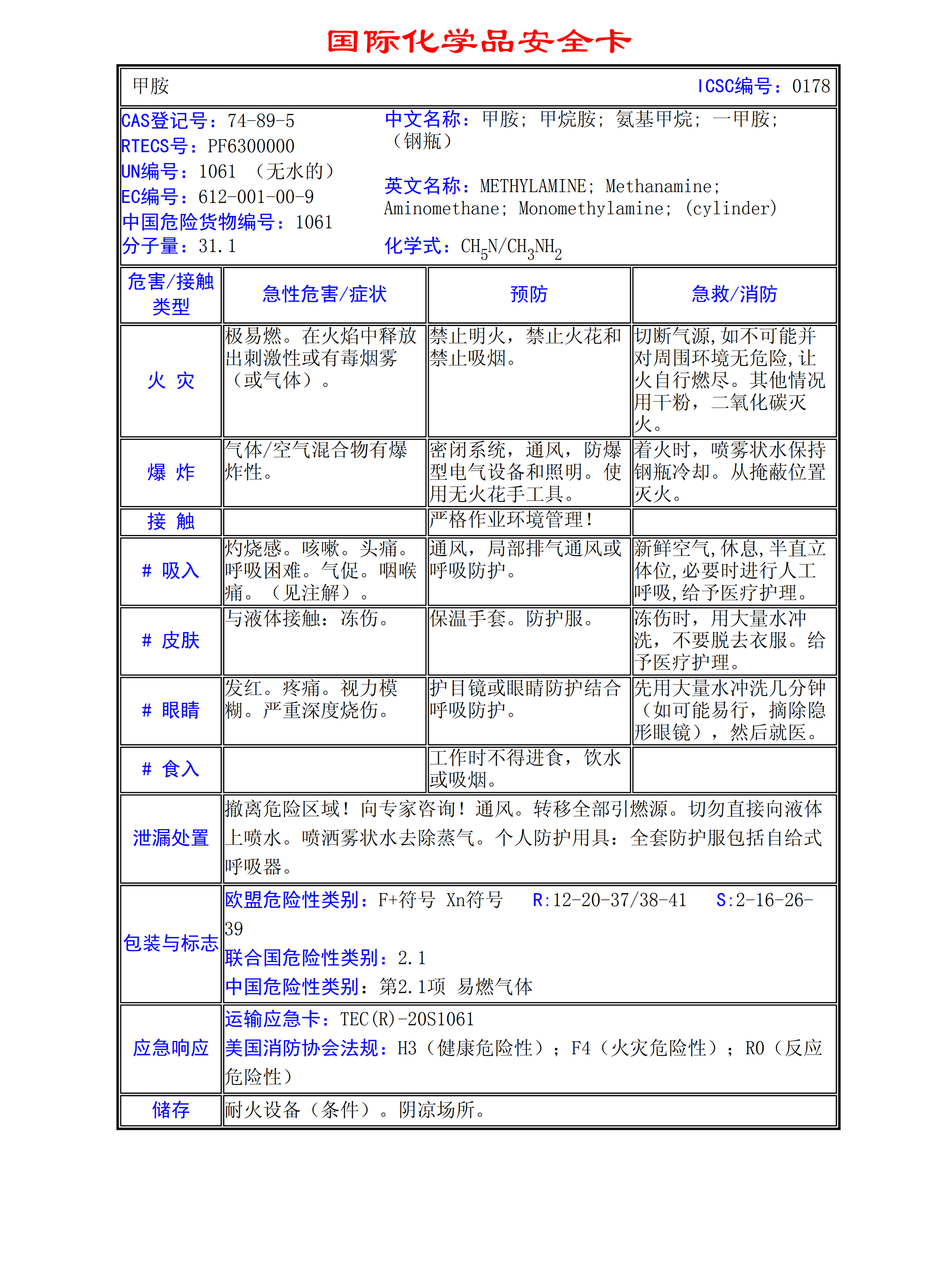 甲胺MSDS
