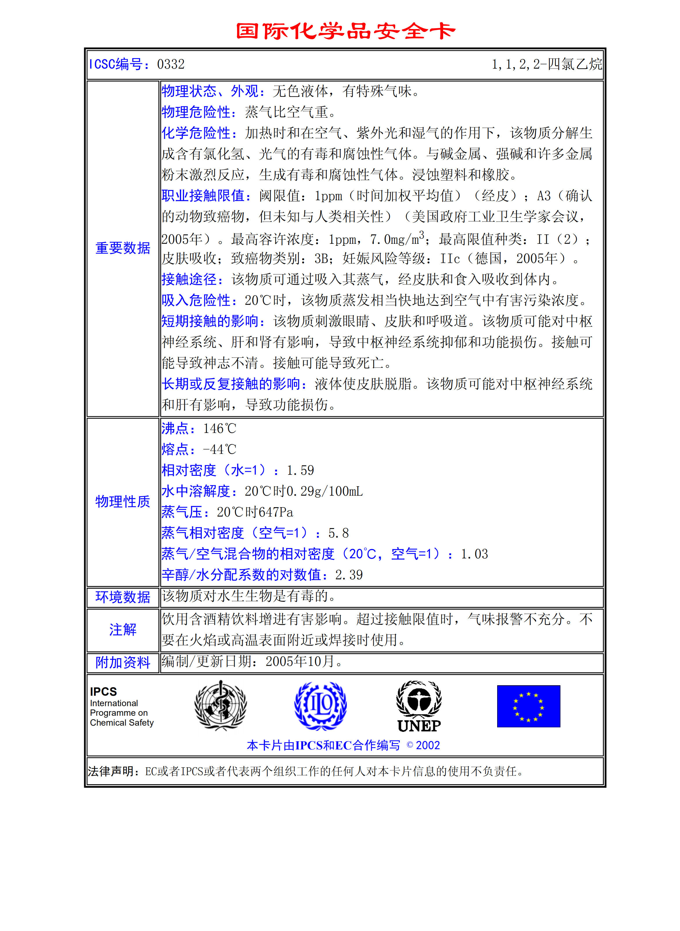 1,1,2,2-四氯乙烷MSDS