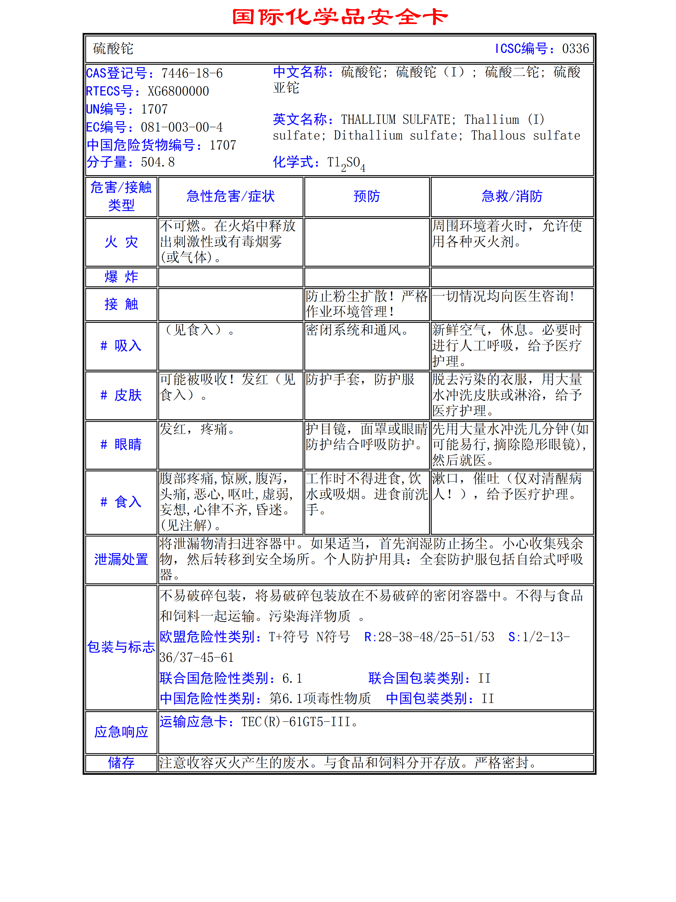 硫酸鉈MSDS
